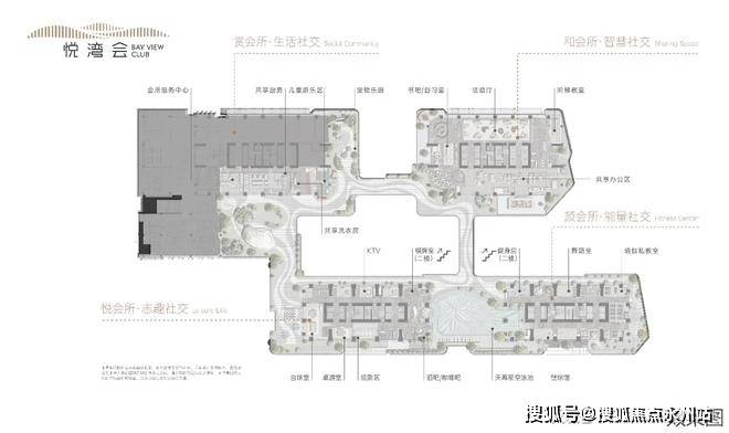 柏悦湾首创约5000㎡新精致主义社交CLUB--悦湾会,以多维空间折叠生活的理念建构和、颜、悦、赏四大主题会所。