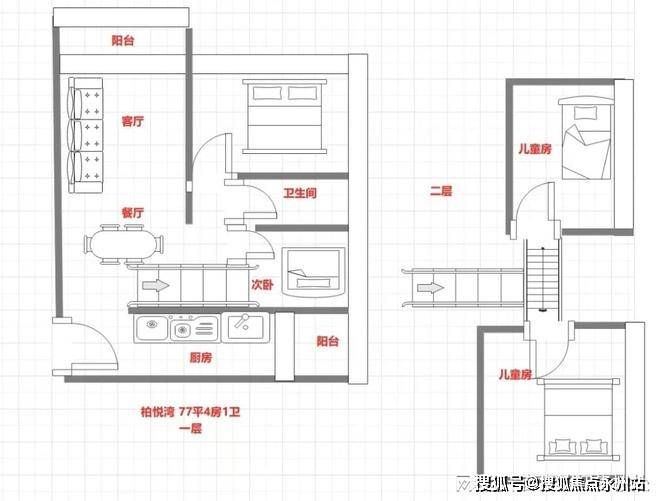77㎡4房1卫:一层4套端头位置东北,西北,东南西南,双面采光景观4面景观